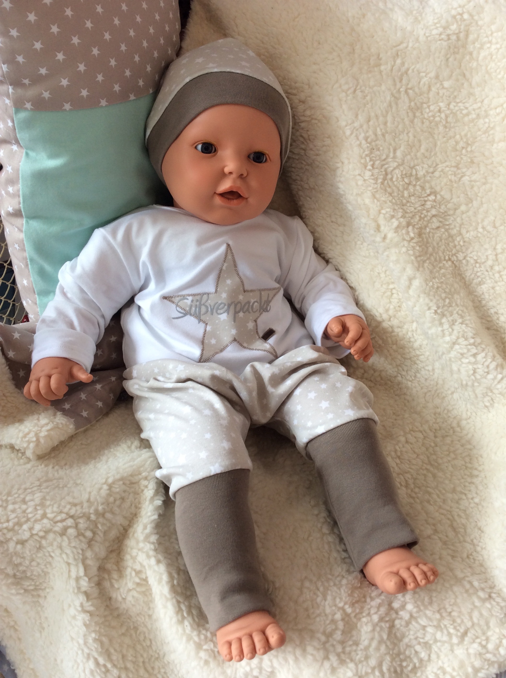 Verstärktes Nackenband Drei Druckknöpfe bis Größe 86/92 Ripp-Kragen mit Lycra-Anteil Doppelnähte an Ärmeln und Bund Material: 92% Baumwolle 8% Elastan mit aufgenähter Stoffapplikation Kann auch mit Wunschname angefertigt werden.